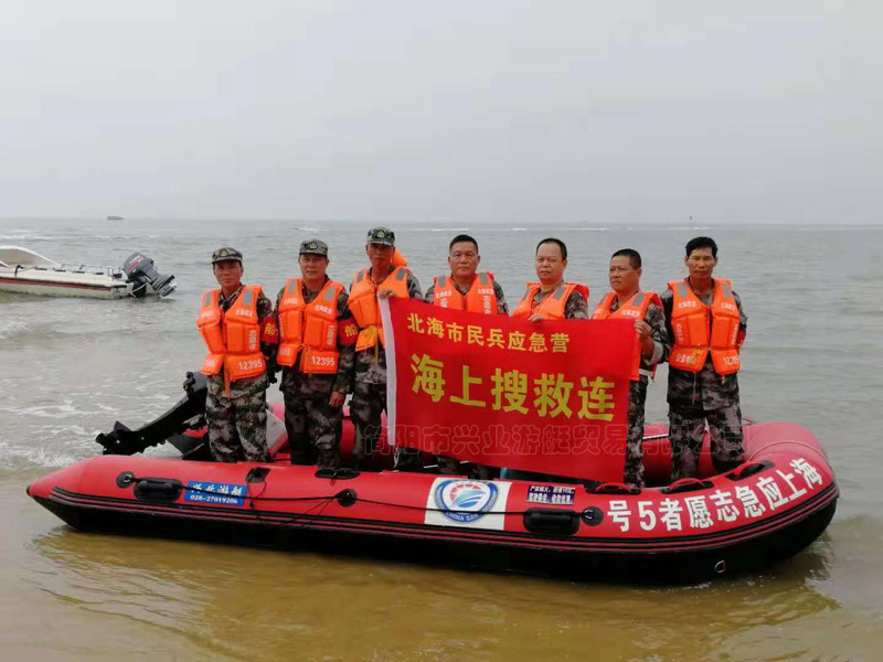 興業(yè)游艇公司生產(chǎn)的鋁合金底橡皮艇具有可靠的安全性,因整艇的充氣浮管被隔成